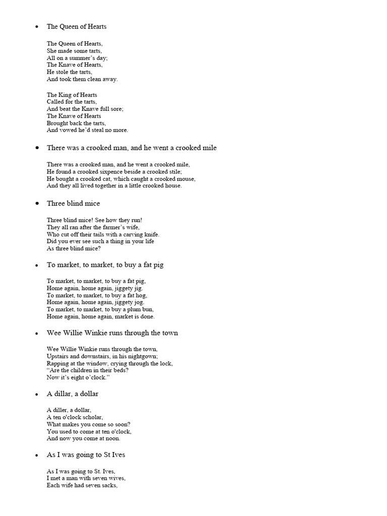 Nursery Rhymes PDF Folk Songs Children's Songs